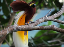 ook op de Molukken voor. De paradijsvogels zijn uitgedost met zeer weelderige veren. Dit is het