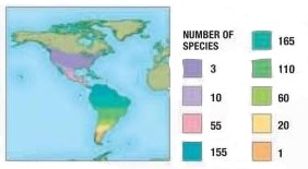 In de warme vochtige tropische regenwouden bij de evenaar zijn in de bossen waarschijnlijk meer dan 1 miljoen insecten. Terwijl in de gematigde gebieden meer naar de polen op bv. de toendra's slechts enkele honderden soorten insecten voorkomen. Zoogdieren en vogels geven een zelfde beeld te zien van minder soorten. Daar staat dan weer tegenover dat dat er soms enorme populaties zijn, er zijn in de zeeën rond Antartica misschien wel 40 miljoen robben. Men denkt dat ook klimaat een rol speelt in de biodiversiteit, maar zeker is men hier niet van.